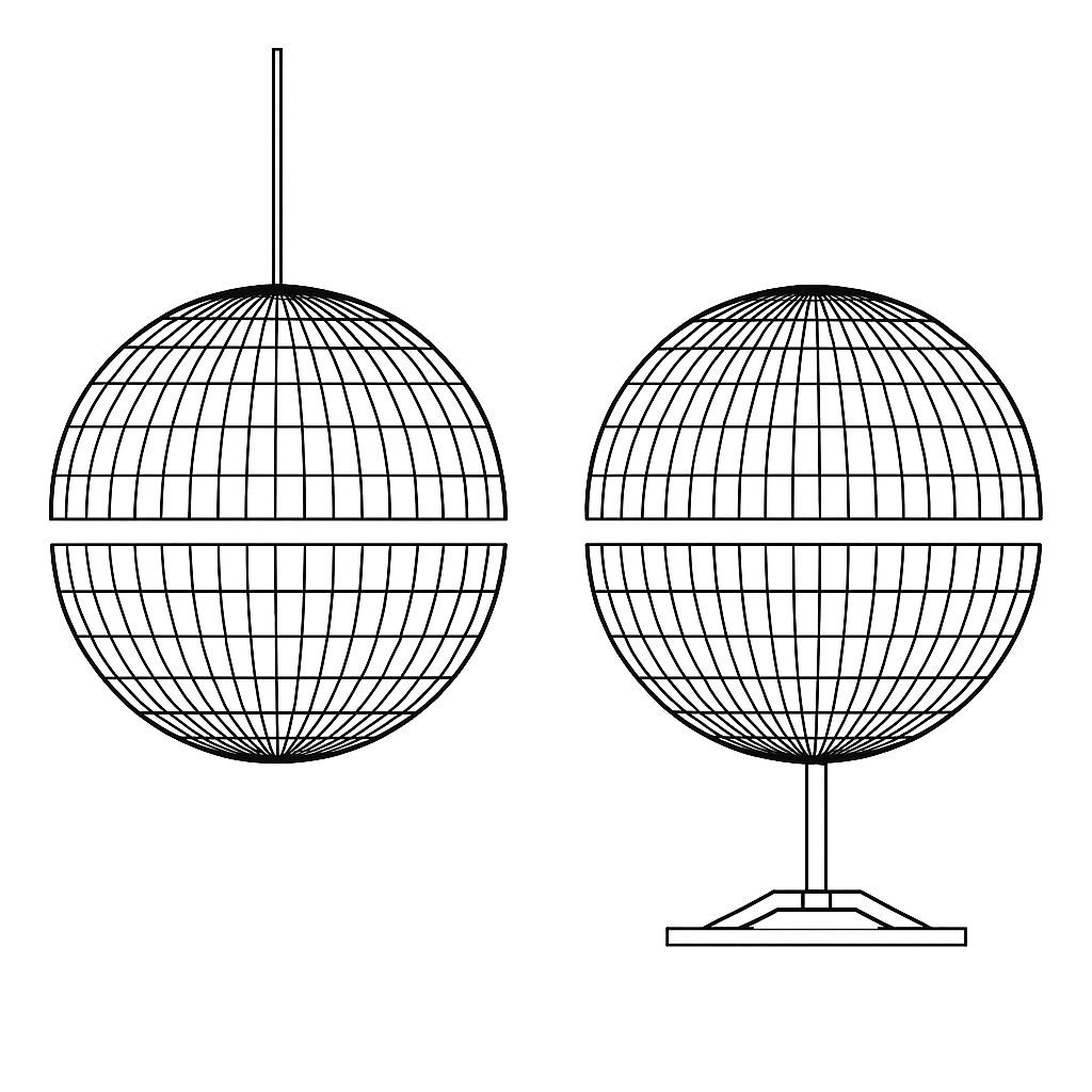 La Sphère LED peut être installée au sol ou en suspension, selon la configuration de votre espace.