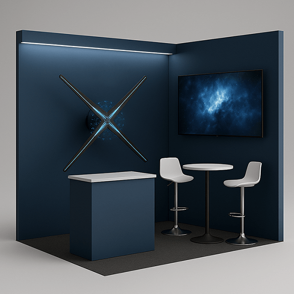 Formats S, M ou L, chaque concept intègre un design optimisé, des zones de démonstration claires et la possibilité d’ajouter vos technologies immersives (LED, hologrammes, écrans transparents, interactifs…).